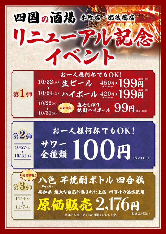 【四国の海が、今日の"食"をつくる】大阪にある大衆酒場「四国酒場」が、10月22日(水)『藁焼きと鯛めし 四国の酒場』へリニューアルオープン!