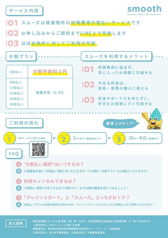 賃貸の初期費用をあと払いにする新サービス「スムーズ」を導入