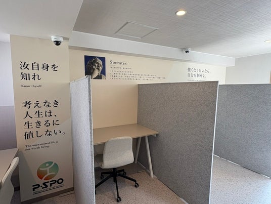 4階は『ソクラテス』の思想をテーマにした空間で、男女兼用、PCや電卓などの利用もOKのフロアになっております。