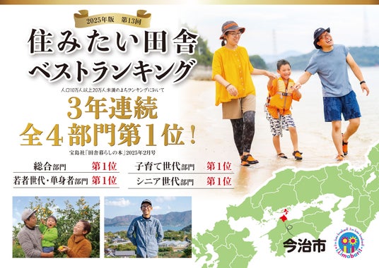 その一例として、移住・定住施策などが評価され、「住みたい田舎ベストランキング(人口10万人以上20万人未満のまち)」において3年連続全4部門1位を獲得し、「選ばれるまち」としての地位を確かなものとしております。また、子育て支援の分野においても、妊娠・出産時から18歳まで子育て全般を切れ目なくサポートする「今治版ネウボラ」の取組が評価され、愛媛県内の自治体で初となる「日本子育て支援大賞」を受賞しました。