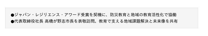 同アワードにおいて、松山市も全世代型防災教育の推進が高く評価され、「内閣総理大臣賞」を受賞しています。こうした受賞を契機に、やる気スイッチグループは企業版ふるさと納税を通じた支援および、地域の教育活性化に向けた協働を進めて参ります。