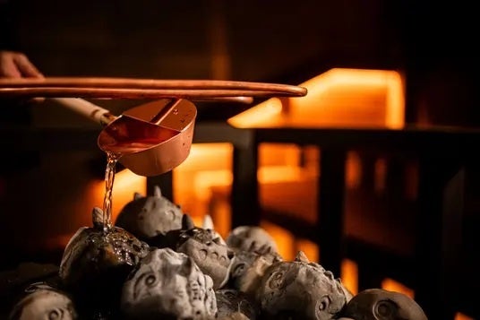 2.伊予の湯治場 喜助の湯の鬼サウナは、蔵を思わせるサウナ小屋の意匠に菊間瓦を取り入れ、空間に入った瞬間から“儀式のはじまり”を感じられる設計です。青い光の「蒼(あお)」は90℃の瞑想空間として静けさと集中を促し、赤い光の「炎(ほむら)」は110℃の超高温で“熱と向き合う”禅サウナとして没入感を高めます。2024年に新設した「閻魔席」では、より強い熱波を体感できる席として挑戦心も刺激します。こうした鬼サウナの世界観に、遍照院で祈祷を受けた菊間瓦サウナストーンを重ねることで、節分シーズンだけの「意味のある蒸気」が完成します。