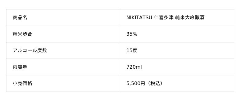 「ワイングラスでおいしい日本酒アワード」は、ワイングラスで日本酒を楽しむ文化の普及を目的に設立された日本酒の品評会です。ワイングラスという特性を活かし、香りや味わいの総合的な評価が行われる本アワードにおいて、最高金賞は出品酒の中でも特に優れた品質と認められた酒のみに授与される最高位の賞です。当社がこの最高位を受賞するのは初めてのことであり、「NIKITATSU 仁喜多津」ブランドの品質の高さが国内の権威ある審査機関から正式に認められた形となります。
