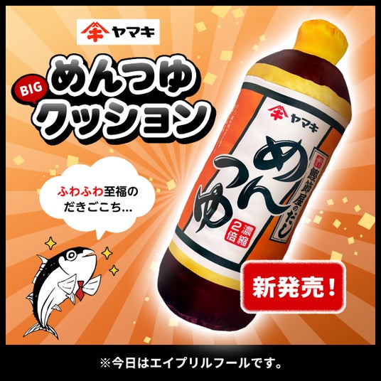 2026年4月1日のエイプリルフールの企画として、公式Xアカウントにて「めんつゆクッション発売」というユーモアを交えた投稿を行ったところ、SNS上では「欲しい!」「ギュッとしてみたい」といった声が寄せられるなどの反響をいただきました。